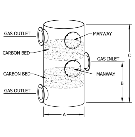 Can be added to an existing pollution control system as a final stage for removal of certain contaminants. Made of corrosion resistant fiberglass material for long service. Compact modular design for easy and economical installation. Various types of activated carbon available for different applications.
